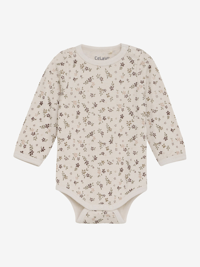 Langarmbody, Wolle/Bambus-Viskose, Blümchen - CeLaVi