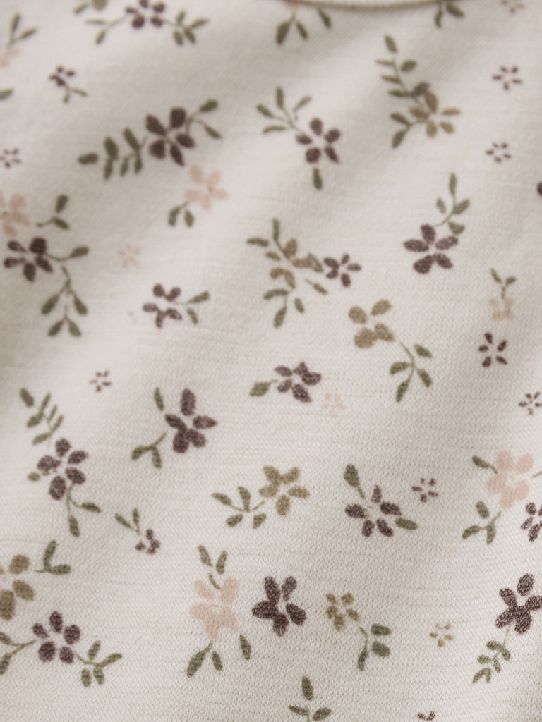 Der Body ist hellbeige und hat einen niedlichen All-Over-Print mit Blümchen in einem dezenten Farbmix (Marron).