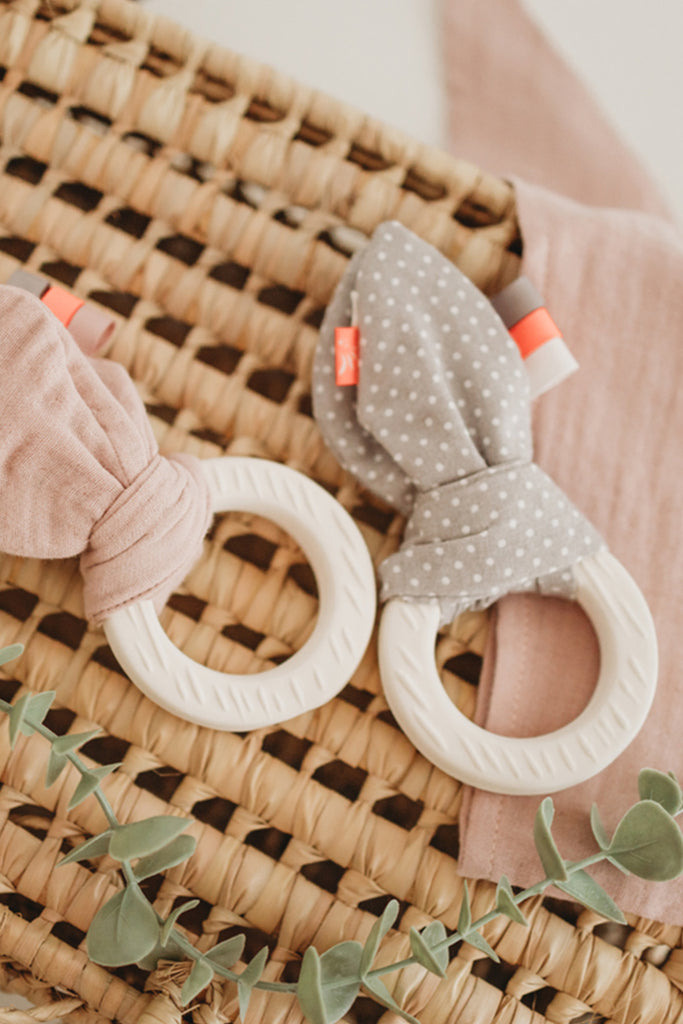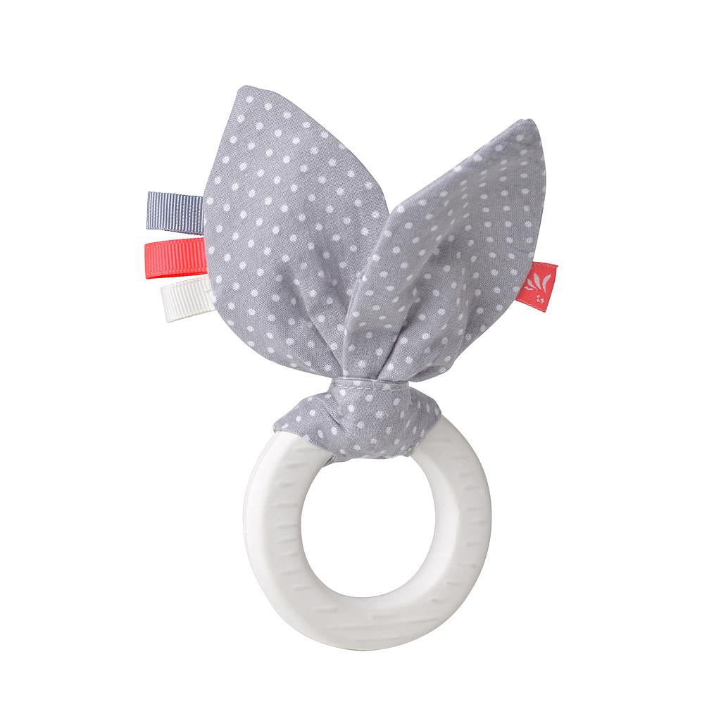 Der strukturierte Ring aus Naturkautschuk mit gepunkteten Schnuffelöhrchen dient nicht nur der Schmerzlinderung beim Zahnen.