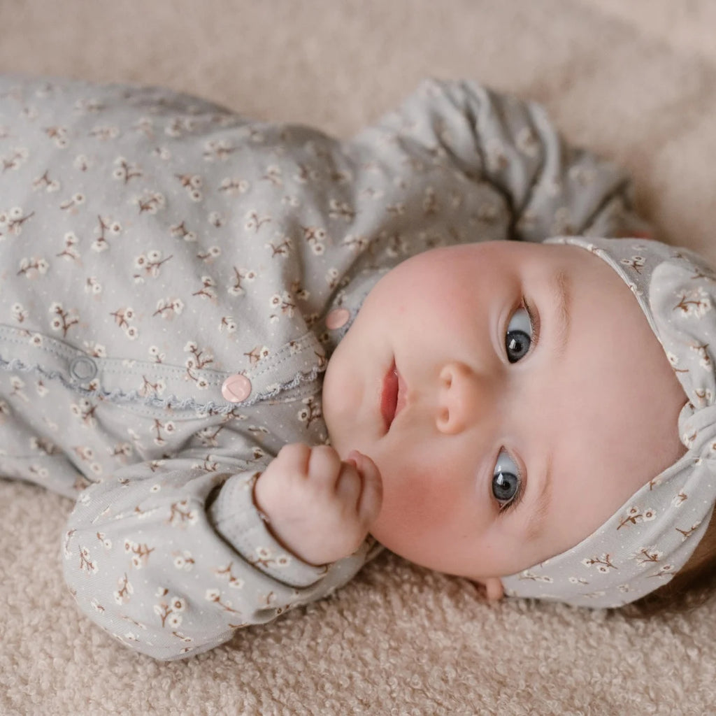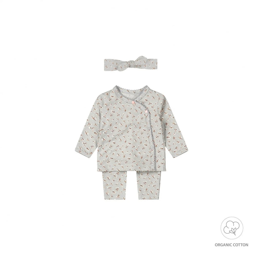 Set: Babyhose, Wickelshirt, Stirnband, Faded Blue (Graublau), geblümt - Dirkje