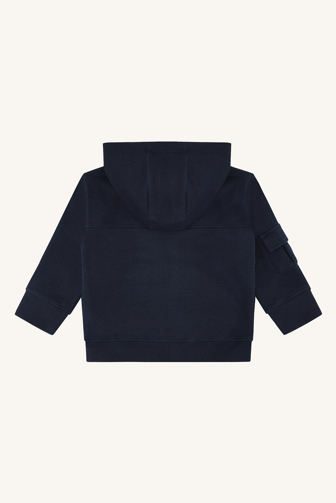 Sie hat ein schönes Marineblau (More Navy) und als Hingucker vorne zwei Känguru-Taschen.